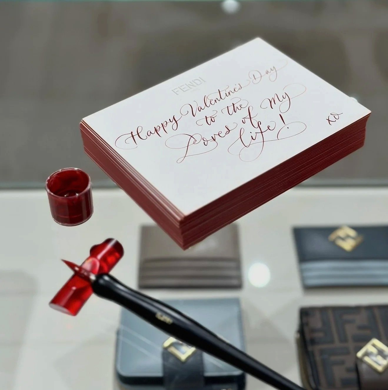 Selected by Fendi to mark the opening of their new Saks Beverly Hills boutique, we created a bespoke live calligraphy experience for their Valentine's Day campaign. Each card was written in Fendi's deep crimson, a personalized love letter in the hand of the brand, gifted to every guest who visited the boutique that day.